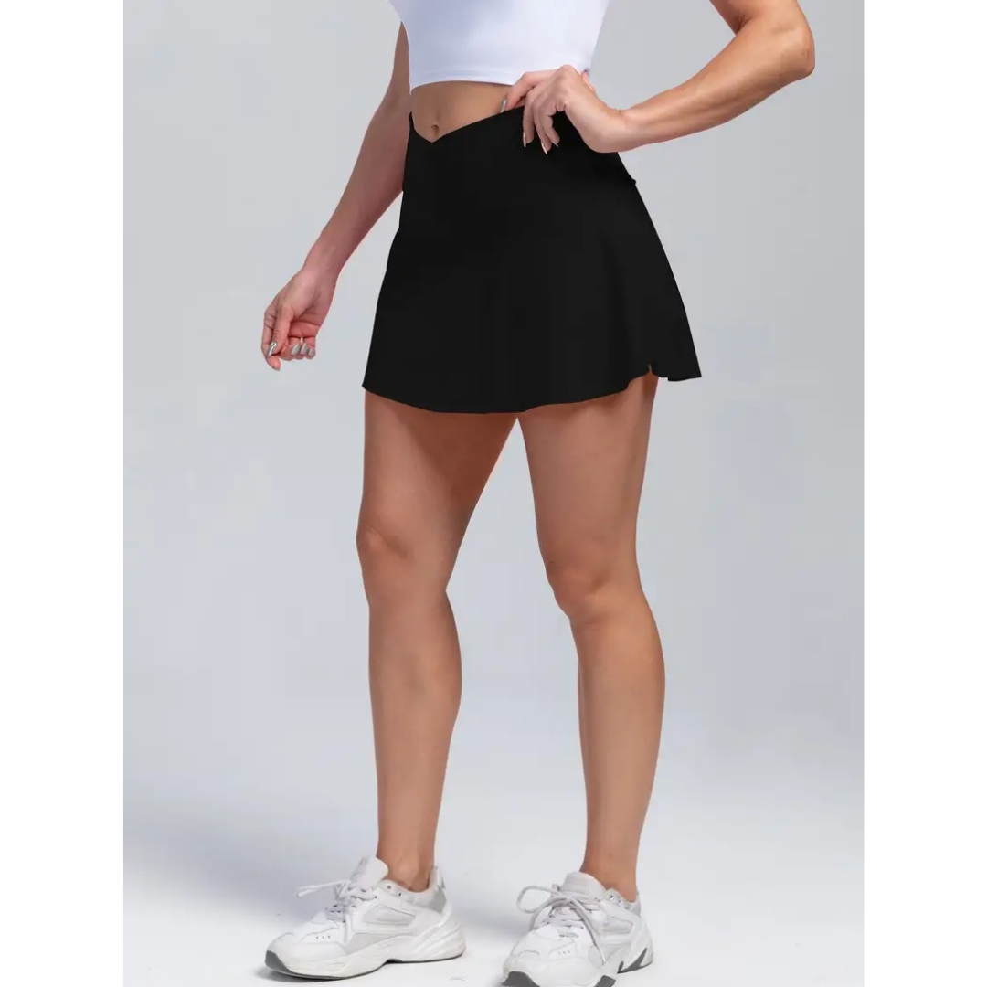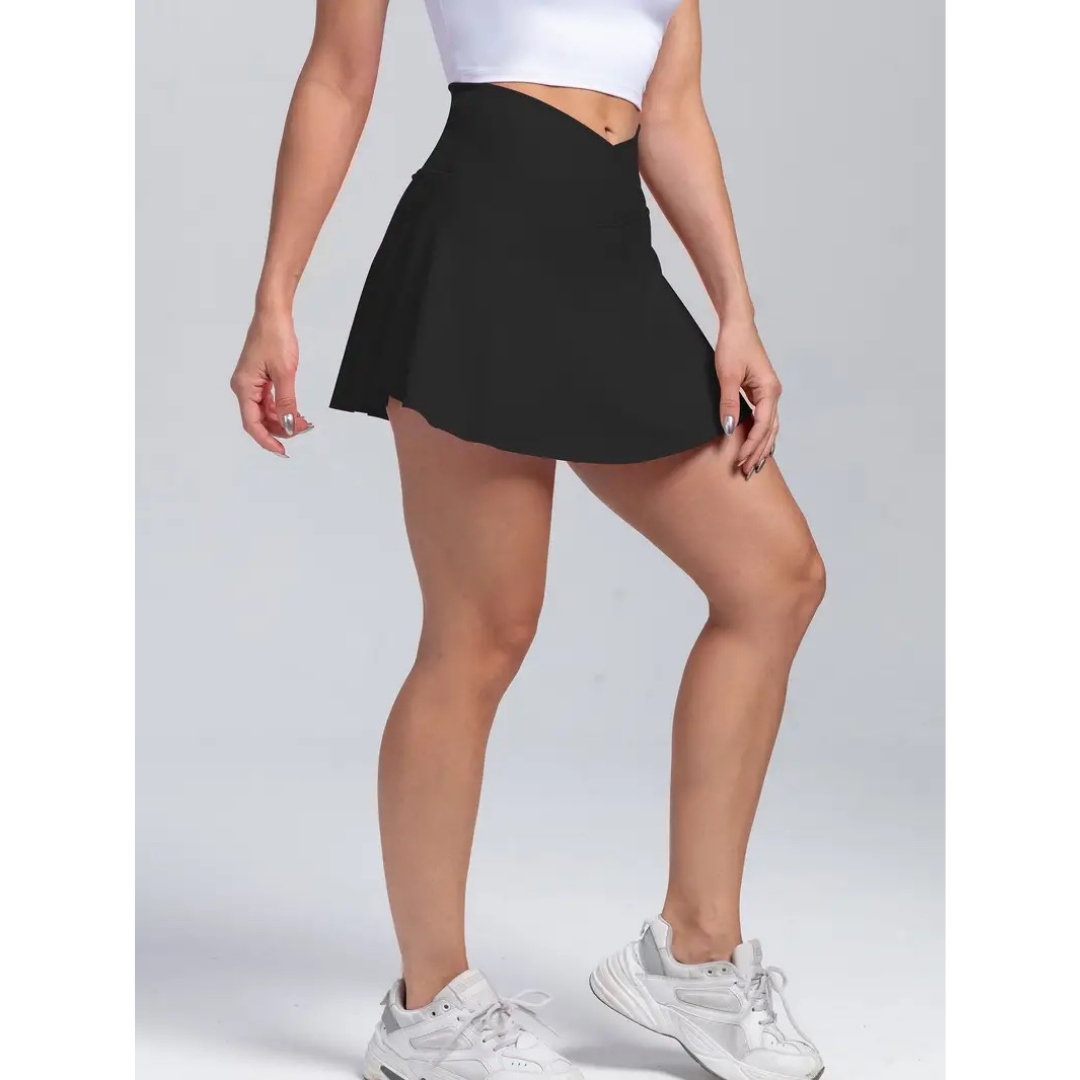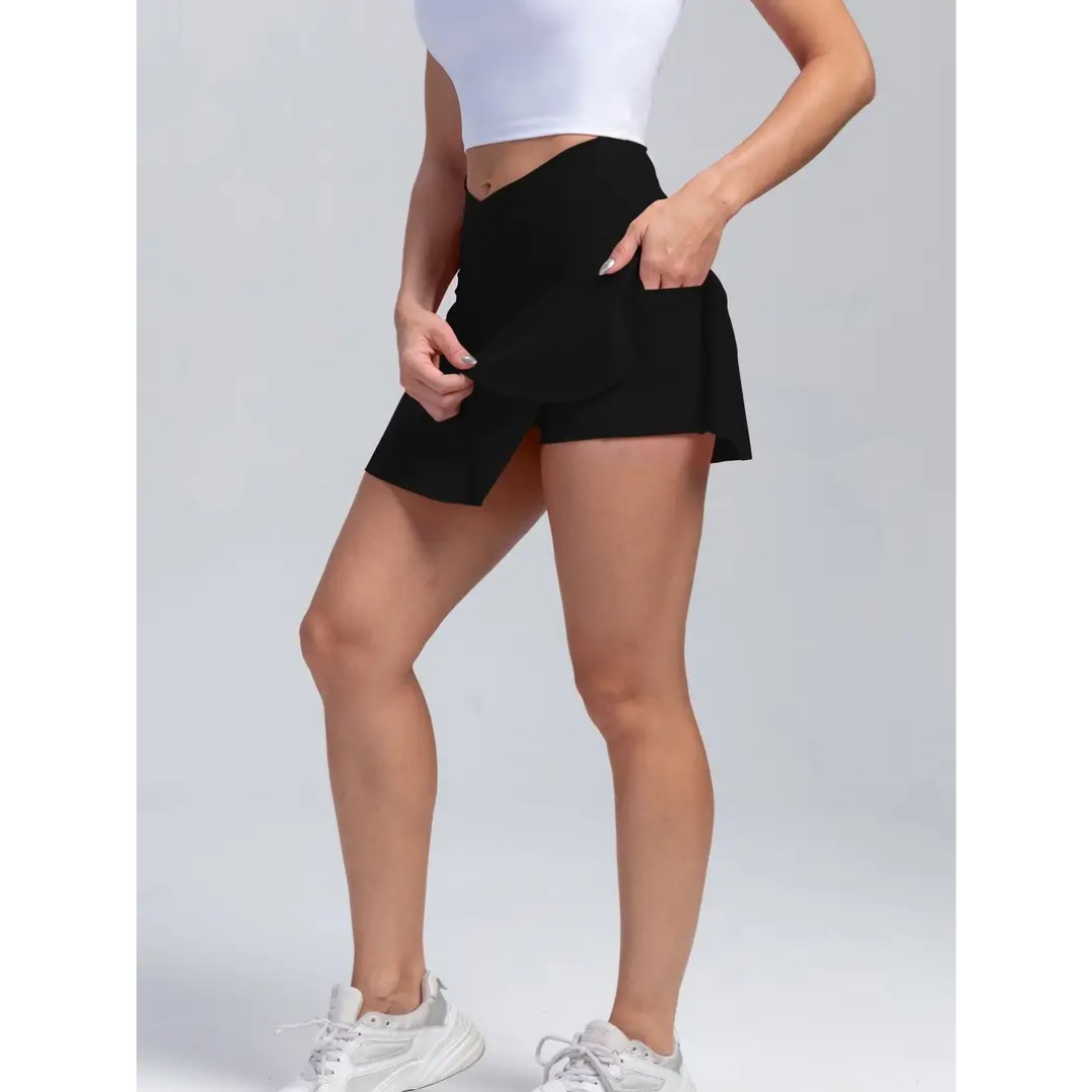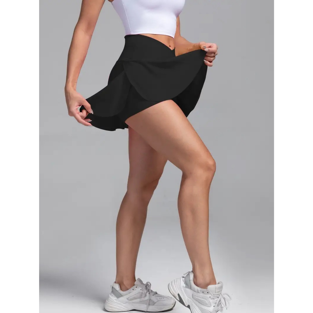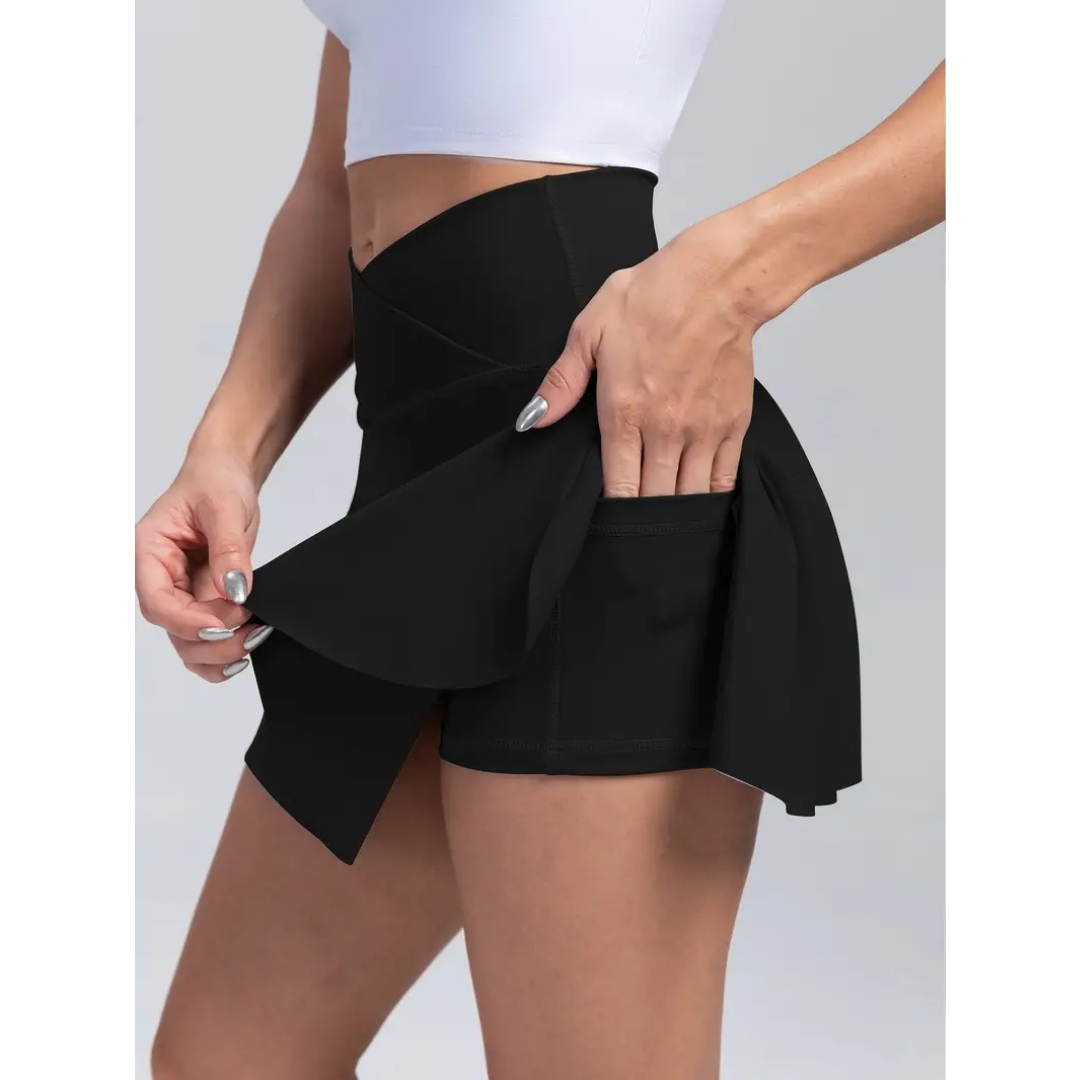 Black 2-in-1 high waist Tennis Overlap Skirt with Shorts and a hidden pocket!