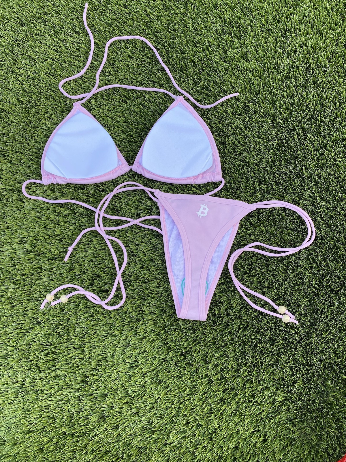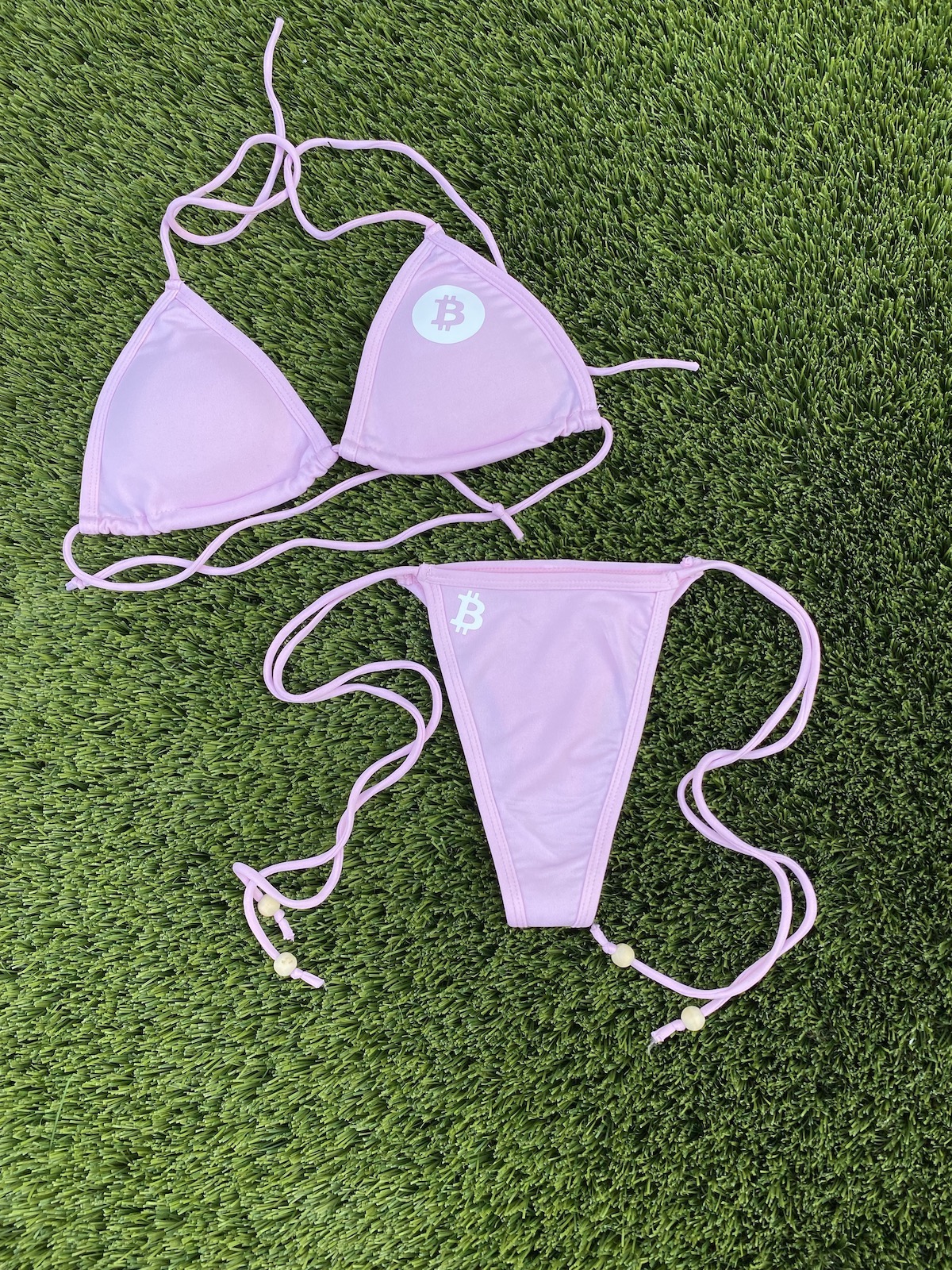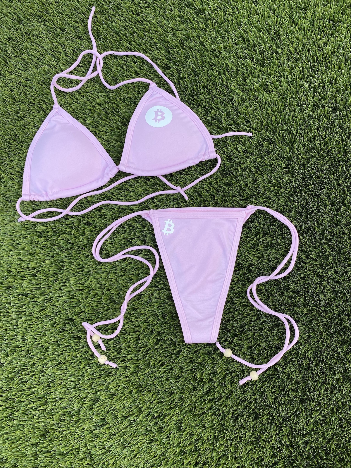 Whether you’re lounging on the beach, soaking up the sun by the pool, or wearing to one of your favorite Bitcoin events, this bikini is sure to turn heads and make a statement!